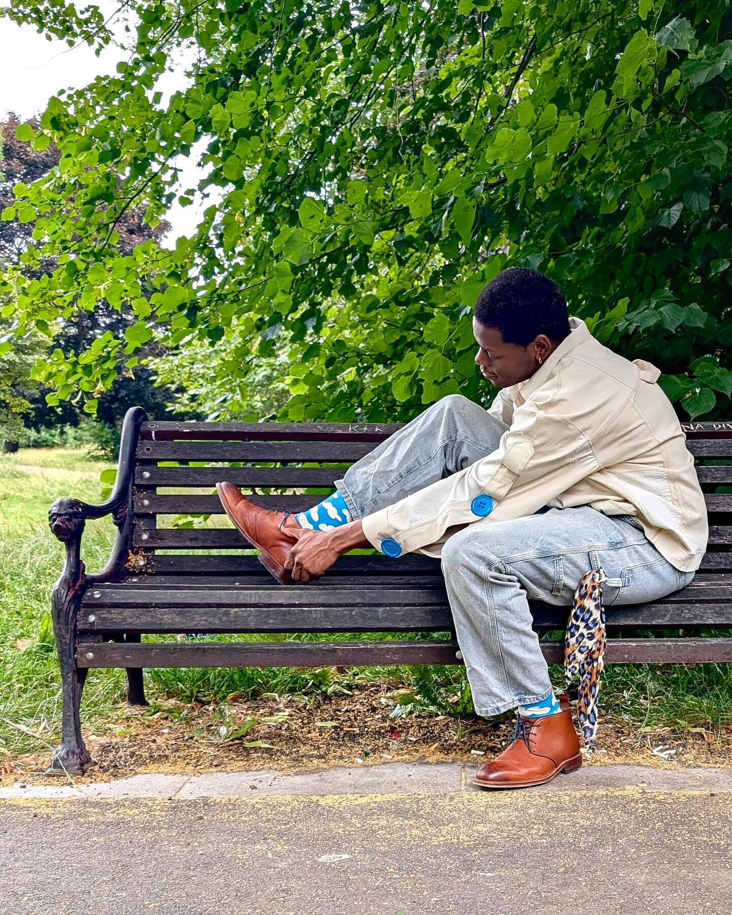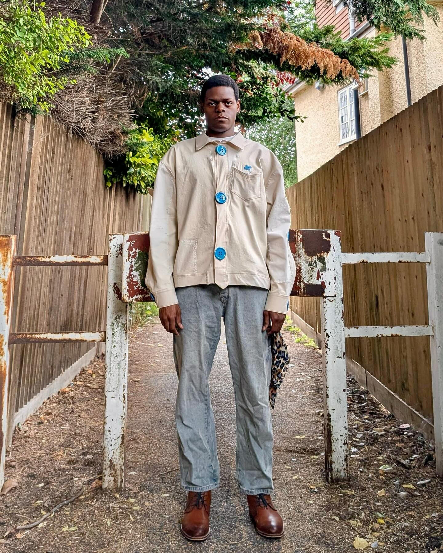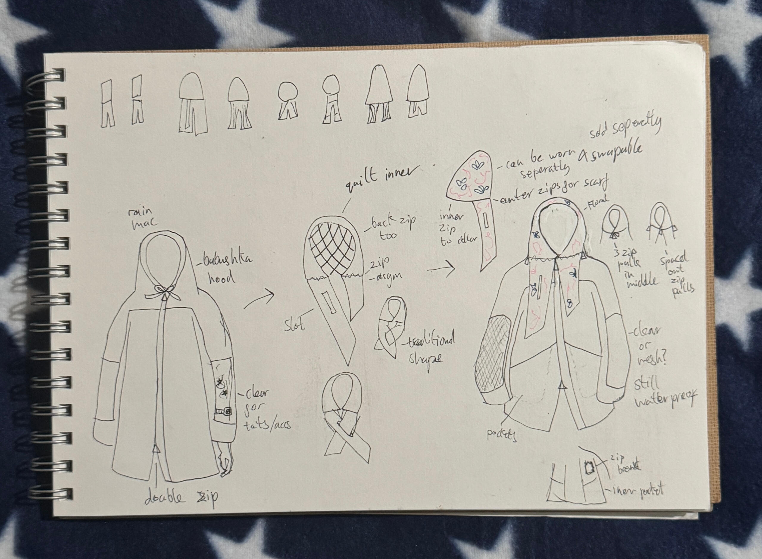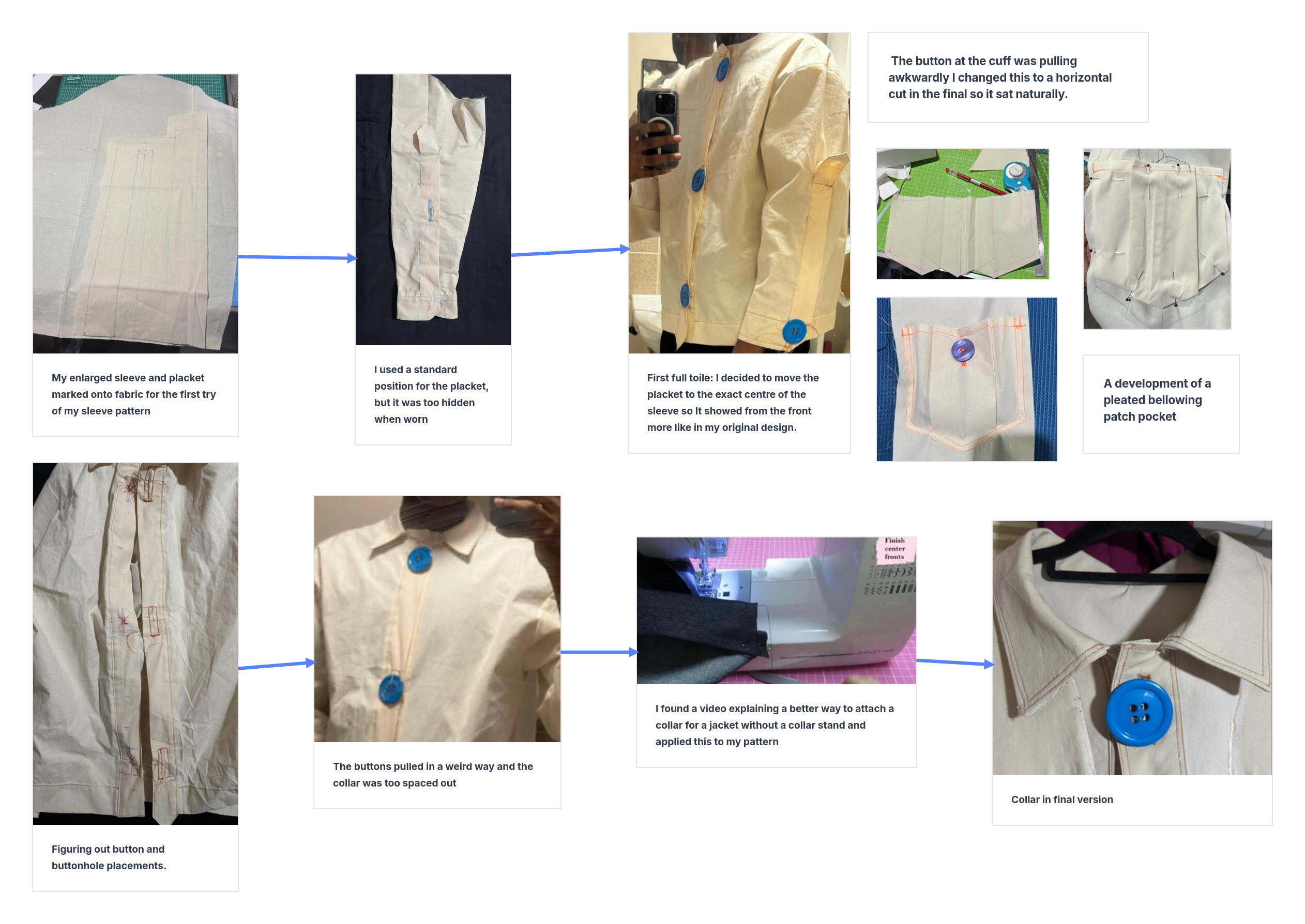 My voice in menswear: Cuts from Elsewhere.Purely a design project focusing on the process of research > design > development > final looks, aimed at exploring my voice in Menswear design and what exactly it is I'd like to add to the space.To explore this, I began with a questionnaire among my peers. Though the responses were inevitably biased, I did glean important information and found holes in my assumptions.Such as the overwhelming response that men love their leather jackets, it’s a classic and cool look for sure, but not one I’ve necessarily ever felt suited me. Why is that? What’s the leather jacket that I would want to wear, and what does it look like?Women’s fashion thrives on variety, playfulness and the boldness to express themselves in whichever way they see fit. Why does men’s clothing seem so restrictive? I want to reintroduce fun into menswear, breaking away from the standardised, uninspired options dominating people's wardrobes.Fit is most important when it comes to clothing, I aim to celebrate masculine silhouettes, emphasising broad shoulders and strong arms. But beyond structure, I am drawing inspiration from masculinity in nature. Male birds, like peacocks, are the flamboyant ones, using vibrant plumage to attract mates. Something that I find to be opposite in fashion amongst humans.Historically, men wore lavish gowns, heels, fur, and frills. Traces of this can still be found in other cultures, from traditional Asian and Arab garments to religious wear. Modern menswear has lost this and I want to reintroduce it.This is why I am pulling from what I know and see, my London is a multicultural landscape, and my designs reflect that. I’ve attempted to bring Japanese silhouettes, European traditions, African-American streetwear, French sensibility and more. I’ve woven in more feminine rounded shapes and cropped cuts, see-through and sheer materials, while maintaining functionality, and style for the modern man.I’m trying to redefine masculinity through contrast, strength meets softness, structure meets flow. And a little playfulness. Men deserve clothing that dares to be noticed without sacrificing wearability or confidence. Pieces that make people pause and grant intrigue.This project is a call to be expressive and free in men's fashion.